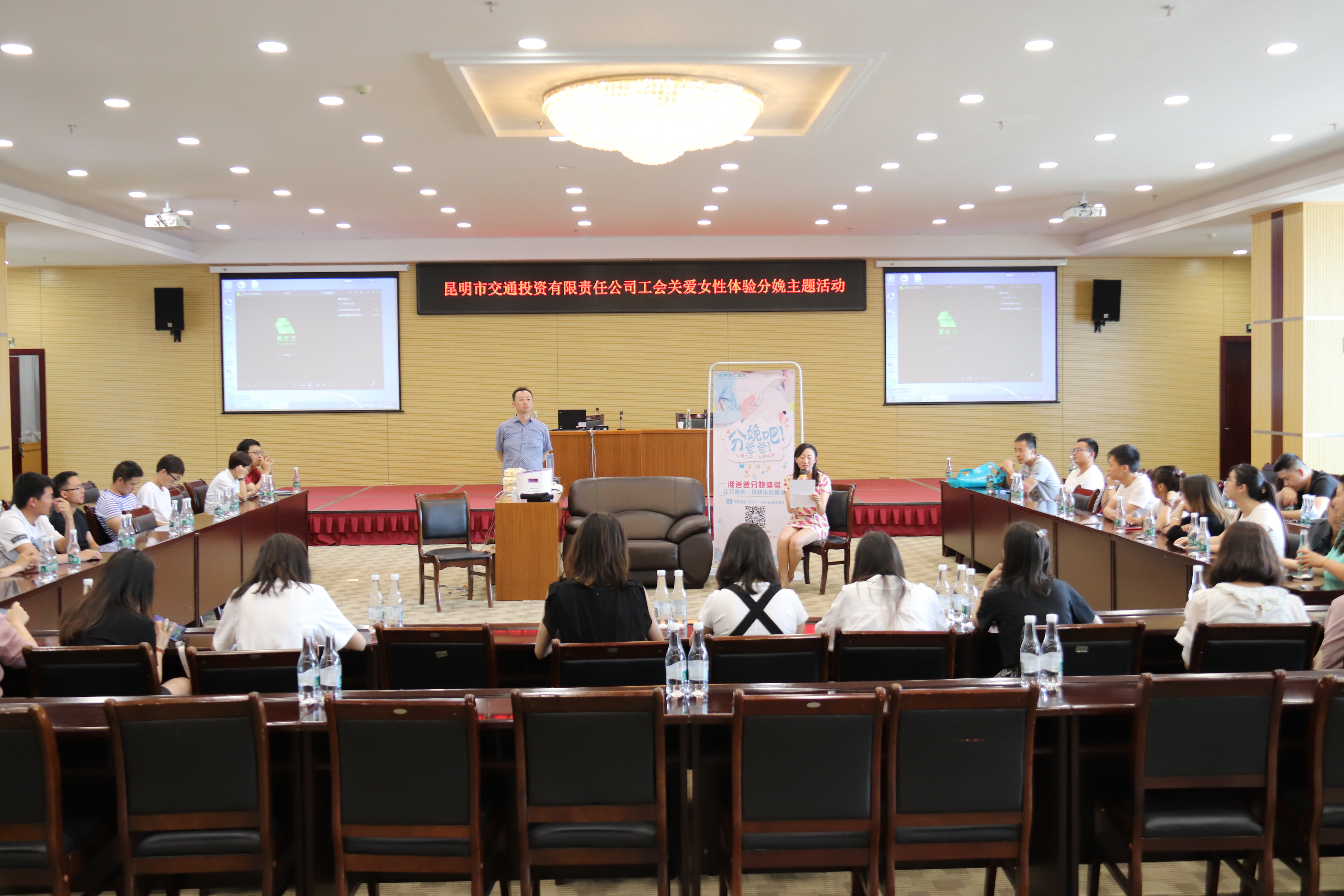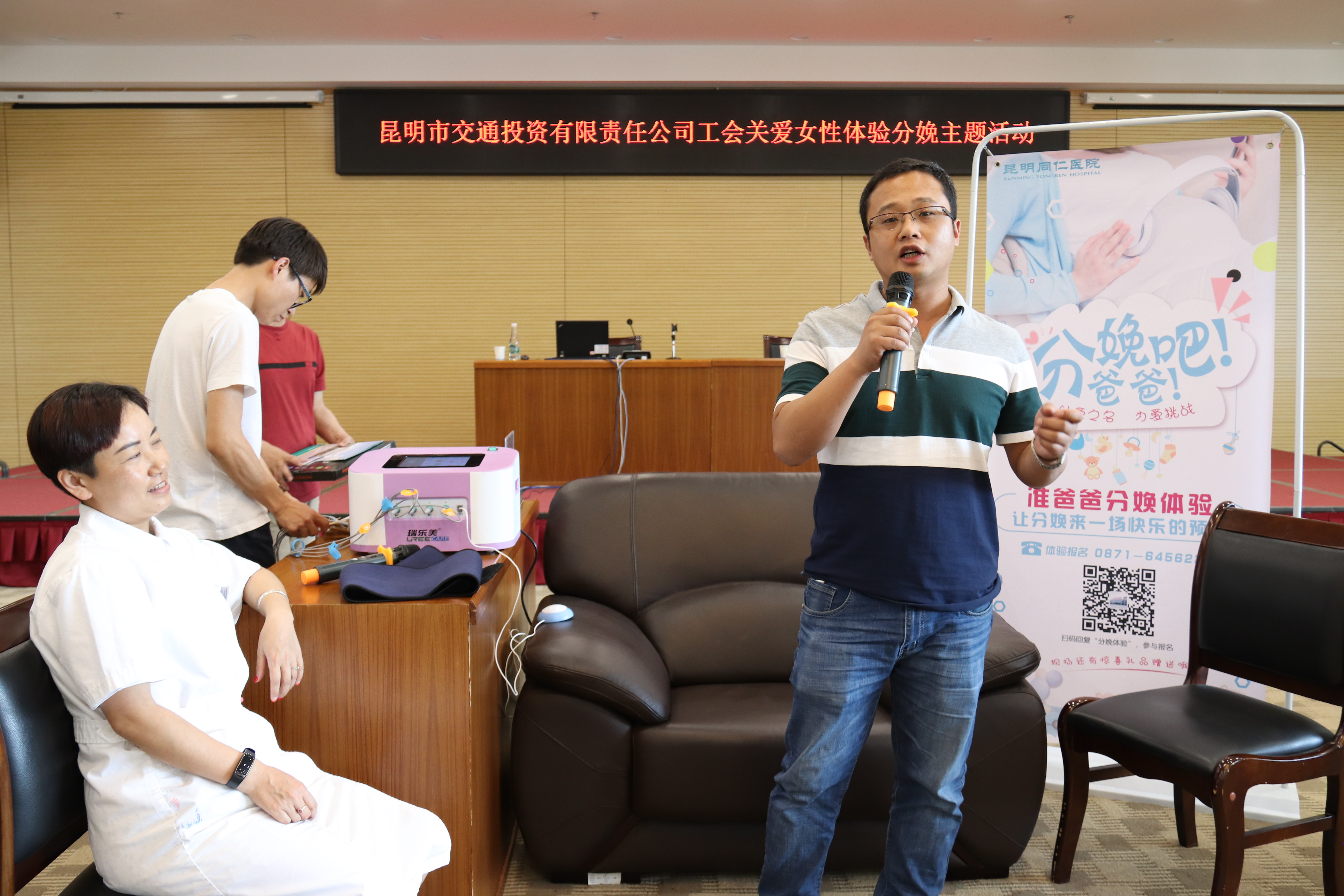 体验活动开始前,党群工作部副部长李晓妍在讲话中指出了举办本次活动的缘由和意义,同仁医院的医生为大家讲解了分娩疼痛的分级及镇痛的方法,并通过播放两段视频对分娩过程和给孕妇带来的变化做出了相关的解答。