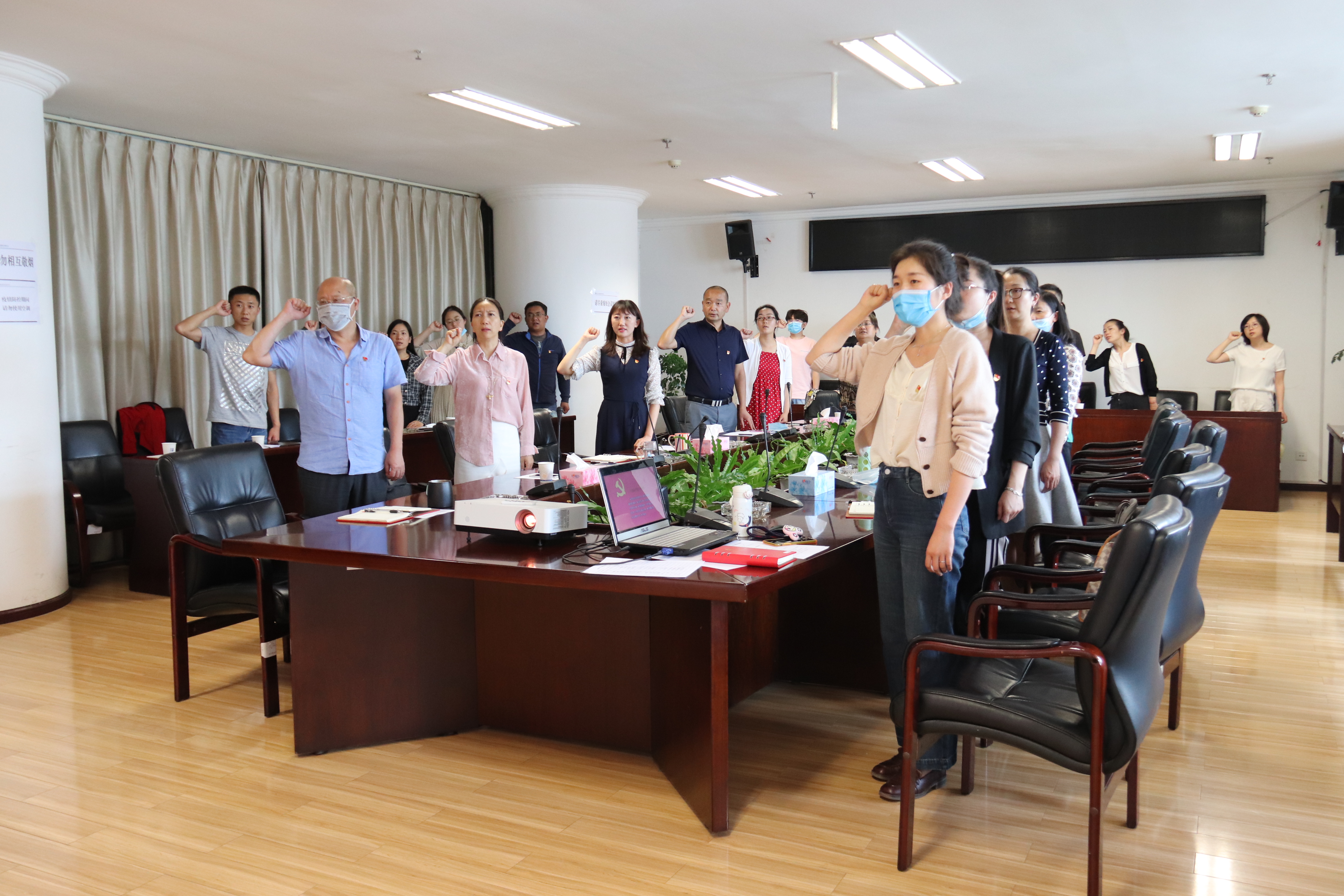 这是一次基层党建的联合互动检验:4月份斗球app 公司党委2020年党支部规范化建设达标创建工作专题会后,列入2020年达标创建的党支部工作现状怎么样?如何提高基层党建整体水平,把党建和主业“双推互促”落地见效?5月22日下午,以“党建引领聚合力支部交流促提升”为主题,聚焦党支部规范化建设达标创建工作,斗球app 公司机关党支部、交产股份公司党支部、基础公司党支部、供应链公司党支部全体党员在公司本部407会议室,重温入党誓词、学习党规党章、学习系列讲话和省、市“两会”精神以及为党员过政治生日、赠送政治生日卡片,同时进行面对面座谈交流、查看台账。
