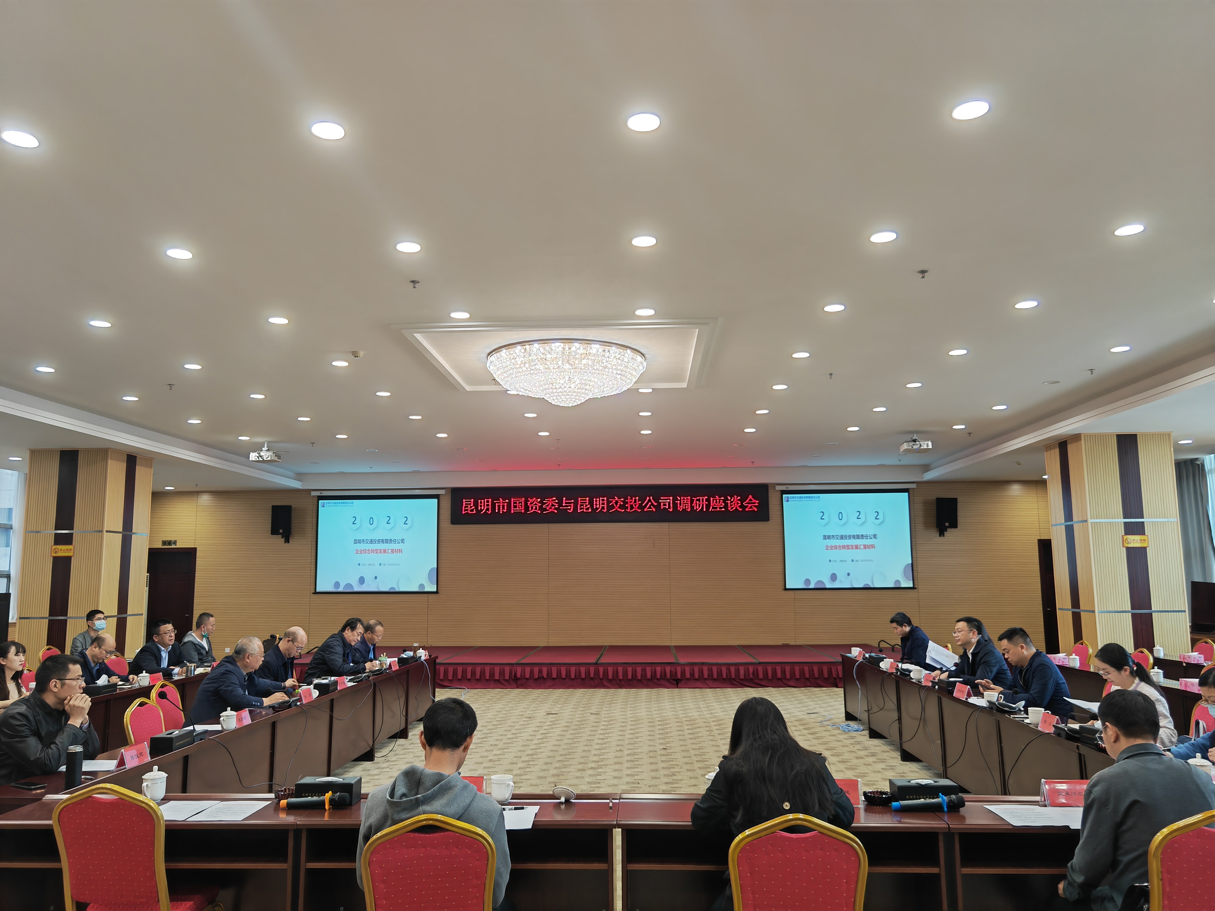 为进一步了解市属国有企业生产经营情况,2022年3月24日上午,由昆明市国有资产监督管理委员会(以下简称“市国资委”)副主任帅铁城带队,到昆明市交通投资有限责任公司(以下简称“斗球app 公司”)开展调研。市国资委副主任倪云丰、宋昱旸、邱兰,资本运营处、考核分配处、企业领导人员管理处、政策法规处、财务监督处、办公室负责同志;斗球app 公司领导班子、资本运营部、财务管理部、投资管理部、人力资源部、董事会工作部、党群工作部、综合管理部负责人参加会议。