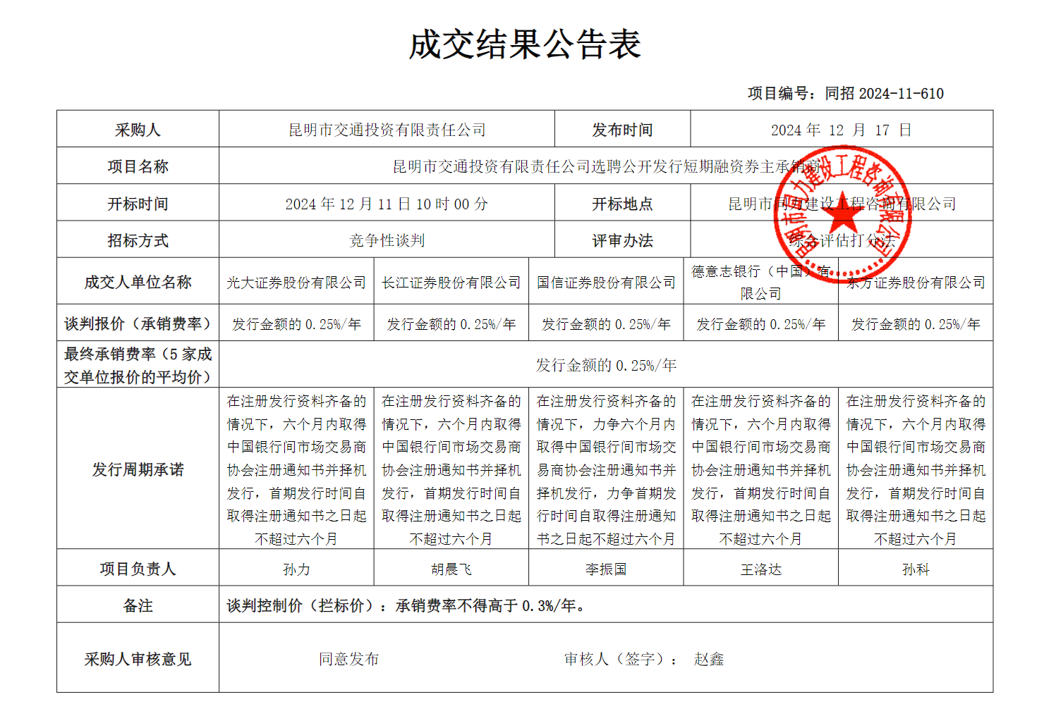 昆明市交通投资有限责任公司选聘公开发行短期融资券法...